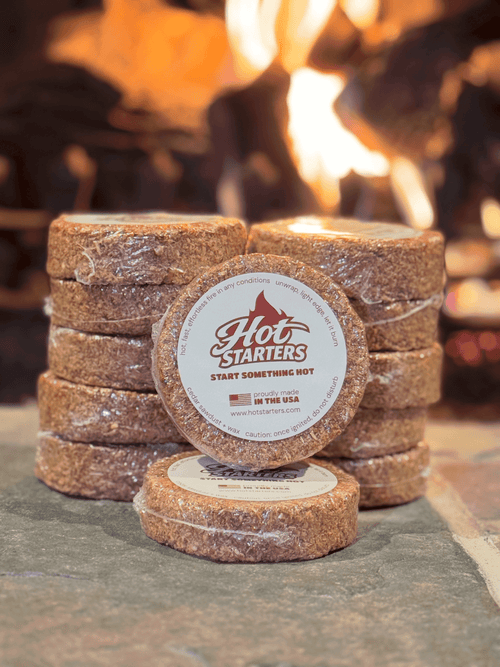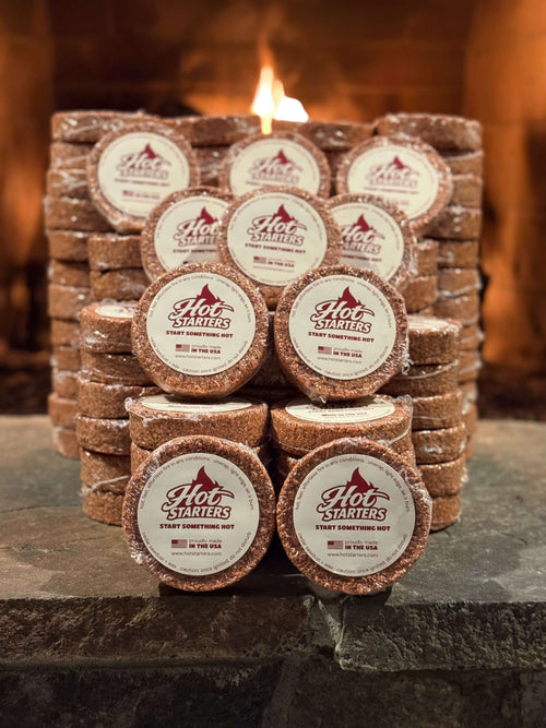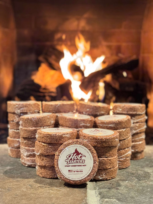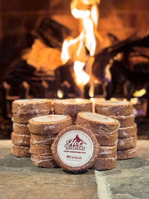 Hot Starters ignite quickly with just one match, reach blazing temperatures fast, and burn cleanly for up to 30 minutes, giving you more time to enjoy your fire and less time fighting with kindling or damp wood. Crafted from natural cedar sawdust and refined wax, our starters leave no residue or harmful chemicals behind, making them safe for your home, grill, or campsite.